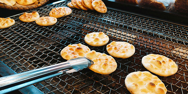 煎餅の卸売業から始まった雷神堂が、今ではこだわりの煎餅を作っています。譲れない思いのもと、手間暇かけた「手焼き・手づくり」にこだわって、日々煎餅を焼き続けています。